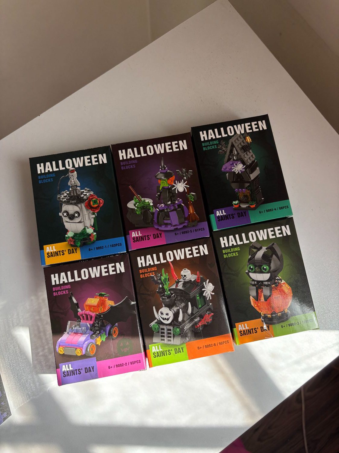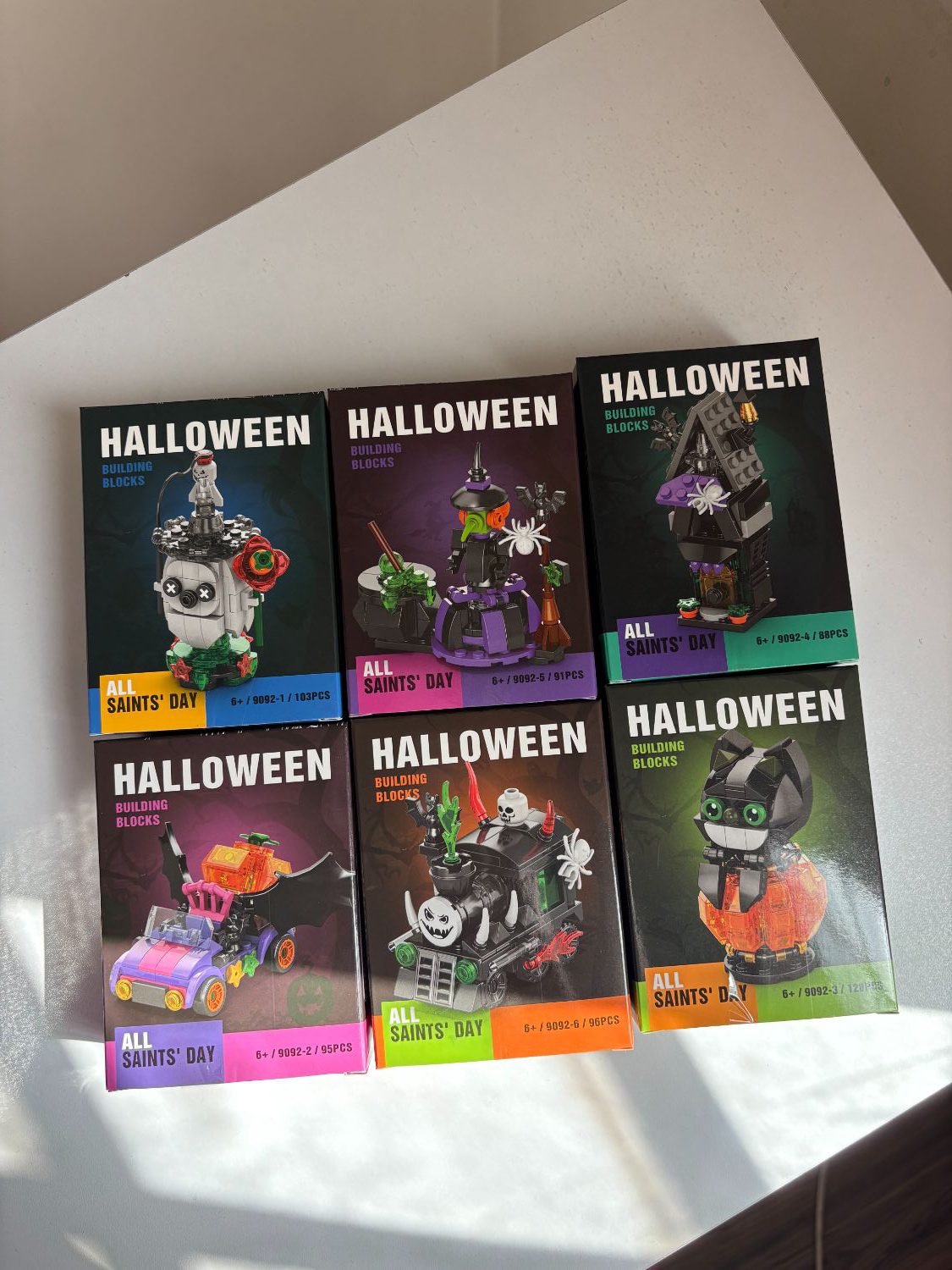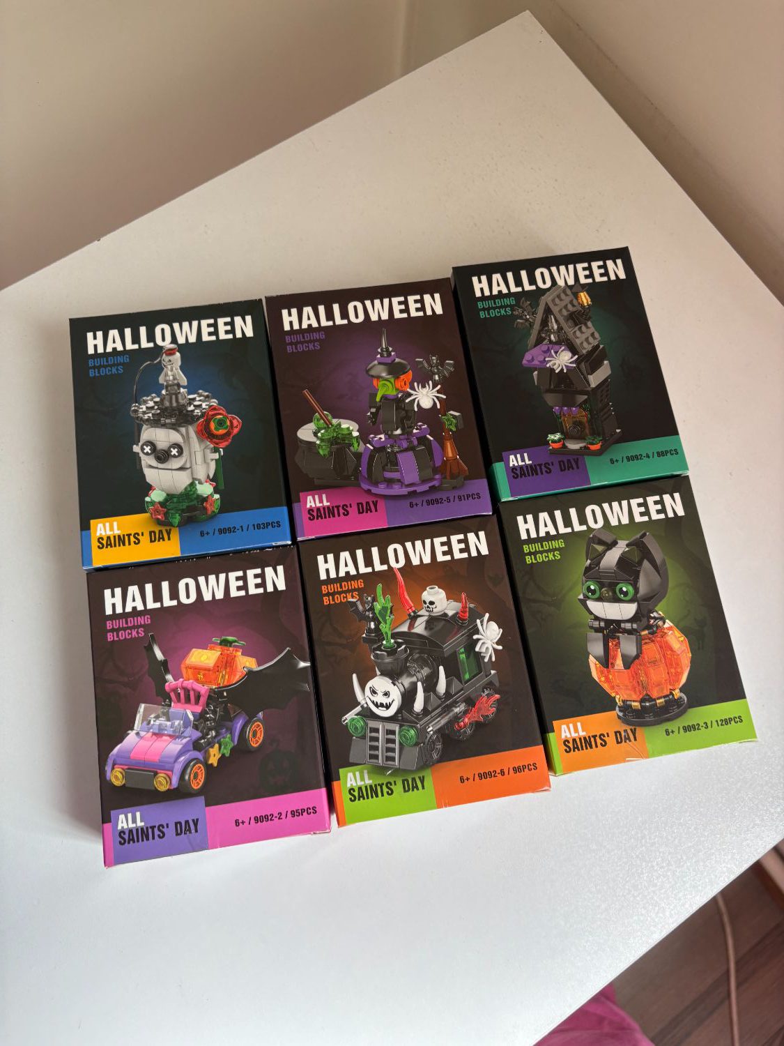 لگو هالووین قطار اشباح شامل شش تر کامل (خفاش و کدو هلوایی،قطار اشباح،ماشین کدو هلوایی،خانه اشباح،جادوگر و پاتیل،شبح) مناسب برای دکور و کلکسیون با کیفیت درجه یک